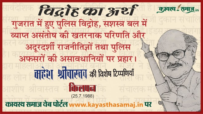 गुजरात में हुए पुलिस विद्रोह, सशस्त्र बल में व्याप्त असंतोष की खतरनाक परिणति और अदूरदर्शी राजनीतिज्ञों तथा पुलिस अफसरों की असावधानियों पर प्रहार।(25.7.1988)